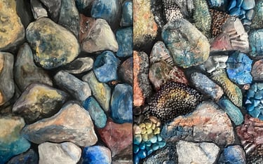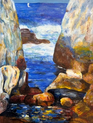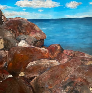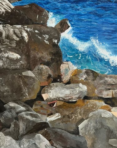 This collection of works focus on the study of rockscapes through mixed media, experimenting with texture, surface, and material, with a particular interest in both coastal and inland landscapes.